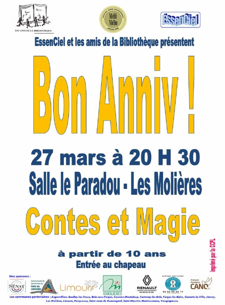 Nous participerons au 30ème Méli-Mélo de Limours du 18 mars au 12 avril 2026.